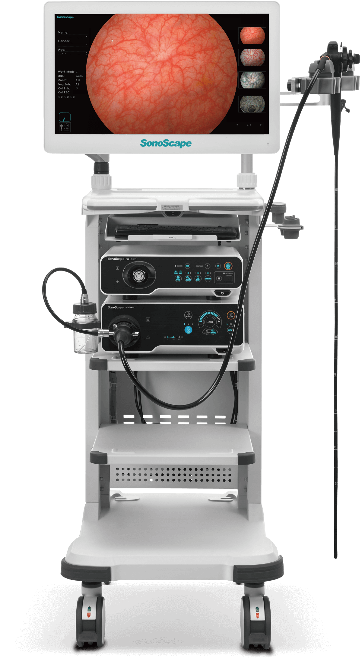 采用红光、蓝光、蓝紫光和绿光四色LED照明,实现更高的光谱自由度, 助力更好的色彩还原 SFI:快速定位异常血运 VIST:区分中浅层微血管,避免损伤
